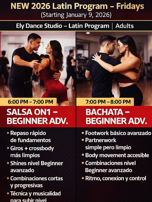 Best salsa dance instructor I've ever had hands down! After taking classes with many instructors I finally found one that feels like home. Ely dance studio takes all the anxiety out of learning, provides a structured lesson each class and breaks down all the steps in a way that becomes second nature. Ive seen beginners looks like naturals after just a couple classes. Cant wait to start level 2 :)